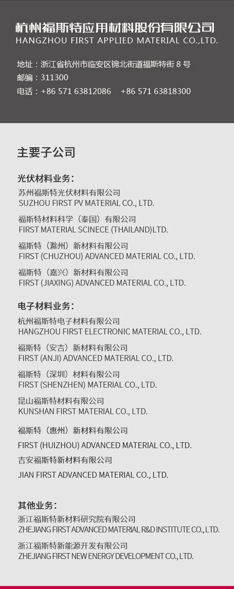 ?2010 HANGZHOU FIRST APPLIED MATERIAL CO.,LTD. All Rights Reserved. 隱私聲明
