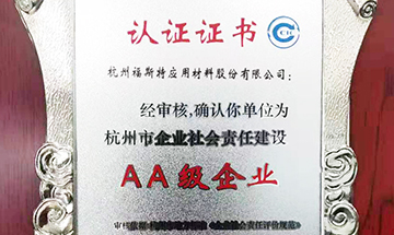 福斯特通過(guò)杭州市企業(yè)社會(huì)責(zé)任建設(shè)AA級(jí)企業(yè)認(rèn)定 [2019-11-03]日前,根據(jù)杭州市企業(yè)社會(huì)責(zé)任建設(shè)暨發(fā)展和諧勞動(dòng)關(guān)系工作領(lǐng)導(dǎo)小組發(fā)布的《關(guān)于認(rèn)定杭州市企業(yè)社會(huì)責(zé)任建設(shè)暨發(fā)展和諧勞動(dòng)關(guān)系先進(jìn)單位的通報(bào)》,認(rèn)定37家企業(yè)為“杭州市企業(yè)社會(huì)責(zé)任建設(shè)AA級(jí)企業(yè)”》,福斯特名列其中獲此殊榮。[查看詳情]