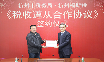 福斯特與杭州市稅務局續(xù)簽《稅收遵從合作協(xié)議》 [2022-01-14][2022-01-14]2022年1月13日上午,杭州市稅務局與福斯特《稅收遵從合作協(xié)議》簽約儀式在公司隆重舉行。國家稅務總局杭州市稅務局黨委委員、副局長申屠水路領導一行,董事長林建華出席簽約儀式。[查看詳情]