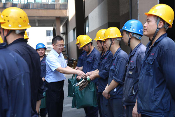 連日高溫,驕陽似火,為做好高溫季節(jié)防暑降溫工作,切實保障一線職工的安全健康,有效促進企業(yè)生產(chǎn)經(jīng)營和重點工程建設(shè),8月11日,臨安區(qū)總工會勞動部部長錢鳴鳳、街道工會主席傅賢軍一行人來到福斯特,為在高溫下堅守一線崗位的職工送去了黨和政府以及工會組織的關(guān)懷慰問,為公司職工送來了夏日清涼。