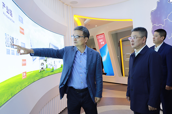 郎文榮一行先后參觀公司展廳、廠區(qū)及數(shù)字化車間,詳細了解公司發(fā)展歷程、企業(yè)規(guī)模、產(chǎn)品特性、綠色生產(chǎn)情況等。他對公司良好的發(fā)展態(tài)勢表示肯定,并指出福斯特作為光伏封裝膠膜的龍頭企業(yè),要以技術(shù)創(chuàng)新賦能企業(yè)綠色發(fā)展,打造臨安新材料產(chǎn)業(yè)發(fā)展新標桿。