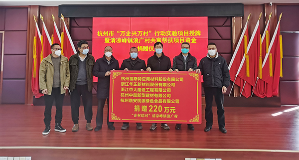 12月21日,杭州市“萬企興萬村”行動實驗項目授牌暨清涼峰鎮(zhèn)浪廣村共富幫扶項目資金捐贈儀式在清涼峰鎮(zhèn)政府舉行。杭州市工商聯(lián)黨組成員、二級巡視員毛???,區(qū)委常委、統(tǒng)戰(zhàn)部長陳娜,區(qū)人大原副主任、慈善總會會長羅石榮,區(qū)工商聯(lián)黨組書記樓金山,清涼峰鎮(zhèn)黨委書記錢波,區(qū)工商聯(lián)主席、杭州福斯特應(yīng)用材料股份有限公司董事長林建華等參加活動。