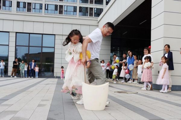 接著,在活動(dòng)主持人的組織下,小朋友們進(jìn)行了兩個(gè)互動(dòng)小游戲。大家跟隨著動(dòng)感的音樂傳遞手中的玩偶,當(dāng)主持人喊“?!睍r(shí),拿到玩偶的“幸運(yùn)兒”需要介紹自己并表演一個(gè)節(jié)目。小朋友們都十分自信地亮出了“看家本領(lǐng)”,唱歌、跳舞、詩朗誦等等才藝信手拈來,獲得全場(chǎng)一片掌聲。第二個(gè)小游戲叫作“合力運(yùn)球”,員工與孩子背靠背在規(guī)定時(shí)間內(nèi)將3個(gè)氣球運(yùn)送到指定地點(diǎn),既是對(duì)親子默契的考驗(yàn),更是速度與智慧的較量。最終決出速度最快的前三組家庭,獲得一份小禮品。