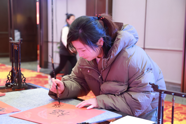 晚上,福斯特“崢嶸歷程三十載,同心同德創(chuàng)未來”三十周年慶典正式拉開帷幕。員工在場(chǎng)外互動(dòng)區(qū)域集章打卡,參與寫福字、投壺、制作明信片等小游戲,玩得不亦樂乎,共同分享喜悅與歡樂。