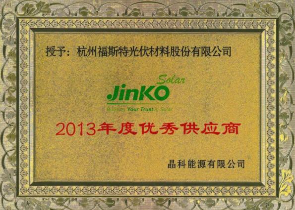 熱烈祝賀福斯特被晶科能源有限公司評為“2013年度優(yōu)秀供應(yīng)商”。