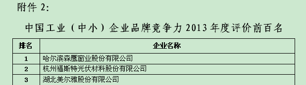 福斯特被評為“中國工業(yè)(中?。┢髽I(yè)品牌競爭力2013年度評價(jià)前百名”第二名