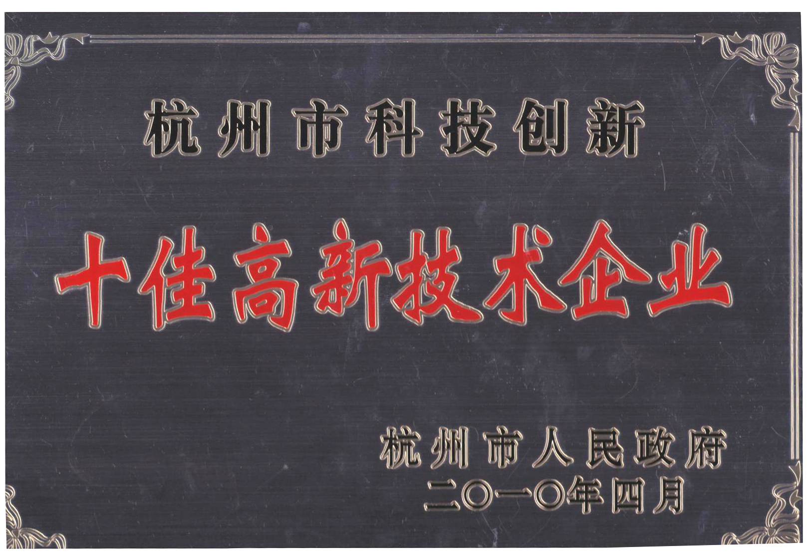 熱烈祝賀公司被評為杭州市科技創(chuàng)新十佳高新技術企業(yè)和杭州市2009年度優(yōu)勢骨干企業(yè)