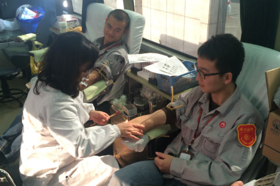 志愿者進(jìn)行無(wú)償獻(xiàn)血