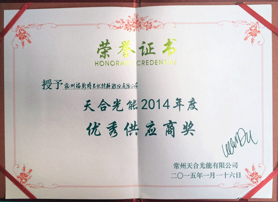 福斯特榮獲天合光能2014年度優(yōu)秀供應(yīng)商獎