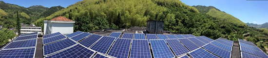 臨安板橋鎮(zhèn)敬老院背靠大山,周圍綠樹掩映,里面住著40多位老人。只見二層小樓的黑色瓦片屋頂上,分別整齊排列著兩排藍(lán)色太陽能板,在陽光的照射下分外好看。除此之外,位于太陽鎮(zhèn)、龍崗鎮(zhèn)、清涼峰的三家敬老院的光伏發(fā)電系統(tǒng)也已安裝完成,其中板橋鎮(zhèn)、太陽鎮(zhèn)已并網(wǎng)成功。每家敬老院的光伏發(fā)電系統(tǒng)的裝機(jī)容量均為10千瓦,今后將每年發(fā)電1萬度左右,基本可以解決敬老院一年的用電問題。福斯特公司捐贈了四家臨安敬老院的全部光伏發(fā)電系統(tǒng),并委托協(xié)會會員單位杭州歐帆能源科技有限公司建設(shè)實(shí)施。