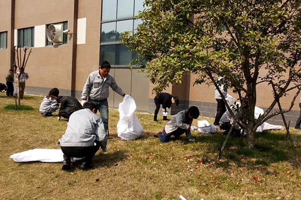 在義務(wù)勞動現(xiàn)場,大家卷起衣袖,揮起手中的鋤頭、鐮刀,埋頭除草。經(jīng)過兩個多小時的奮戰(zhàn),廠區(qū)綠化帶內(nèi)的雜草、枯枝、落葉、干草等得到了清除,廠區(qū)煥然一新。