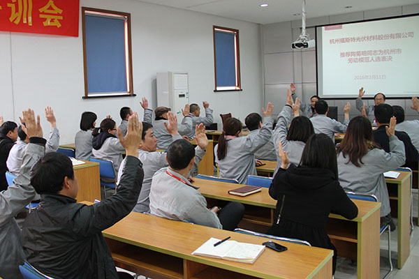 會議聽取福斯特工會委員會《關(guān)于推薦陶菊明同志為杭州市勞動模范人選情況的報告》。會議審議、表決并通過《報告》內(nèi)容,決定推薦陶菊明同志為公司杭州市勞動模范人選。