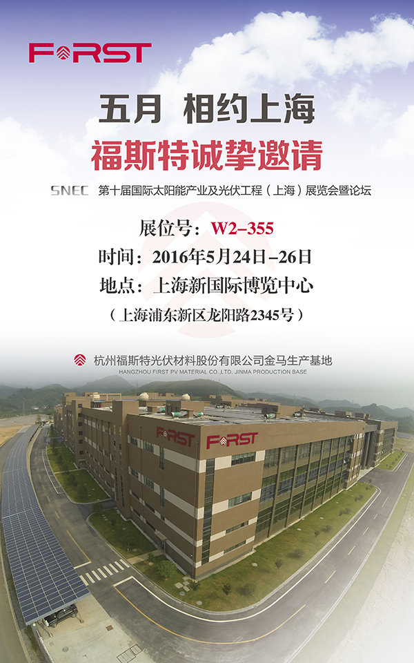 福斯特,全球領先的EVA太陽能膠膜、烯烴膠膜、背板材料供應商,誠摯邀您參加2016上海SNEC展會。福斯特展位號:W2-355,時間2016年5月24日-26日,地點:上海新國際博覽中心(上海浦東新區(qū)龍陽路2345號)。期待您的光臨!
