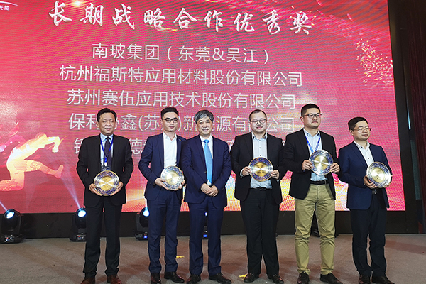 本屆供應(yīng)商大會(huì)中,福斯特榮獲2018年度天合光能“長(zhǎng)期戰(zhàn)略合作優(yōu)秀獎(jiǎng)”。公司始終堅(jiān)持“高效、卓越、客戶第一”的服務(wù)宗旨,多年來(lái)與天合光能一起攜手同行,共同發(fā)展。福斯特為客戶提供高品質(zhì)的光伏封裝材料并得到客戶單位的高度信任和認(rèn)可。