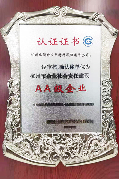福斯特通過杭州市企業(yè)社會責任建設(shè)AA級企業(yè)認定